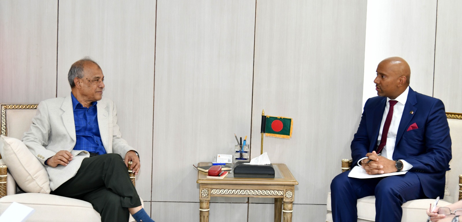বৈঠকের শুরুতে উপদেষ্টা প্রতিনিধিদলকে স্বাগত জানান।হাইকমিশনার বাংলাদেশের খাদ্য নিরাপত্তা নিশ্চিতে তার দেশ প্রয়োজনীয় সহযোগিতা করতে আগ্রহী জানিয়ে পটাশ সার রপ্তানি , ডেইরি ও পোল্ট্রি খাতের ভ্যাকসিন সরবরাহসহ বিবিধ বিষয় অবগত করলে উপদেষ্টা তাঁর প্রস্তাবকে স্বাগত জানান।