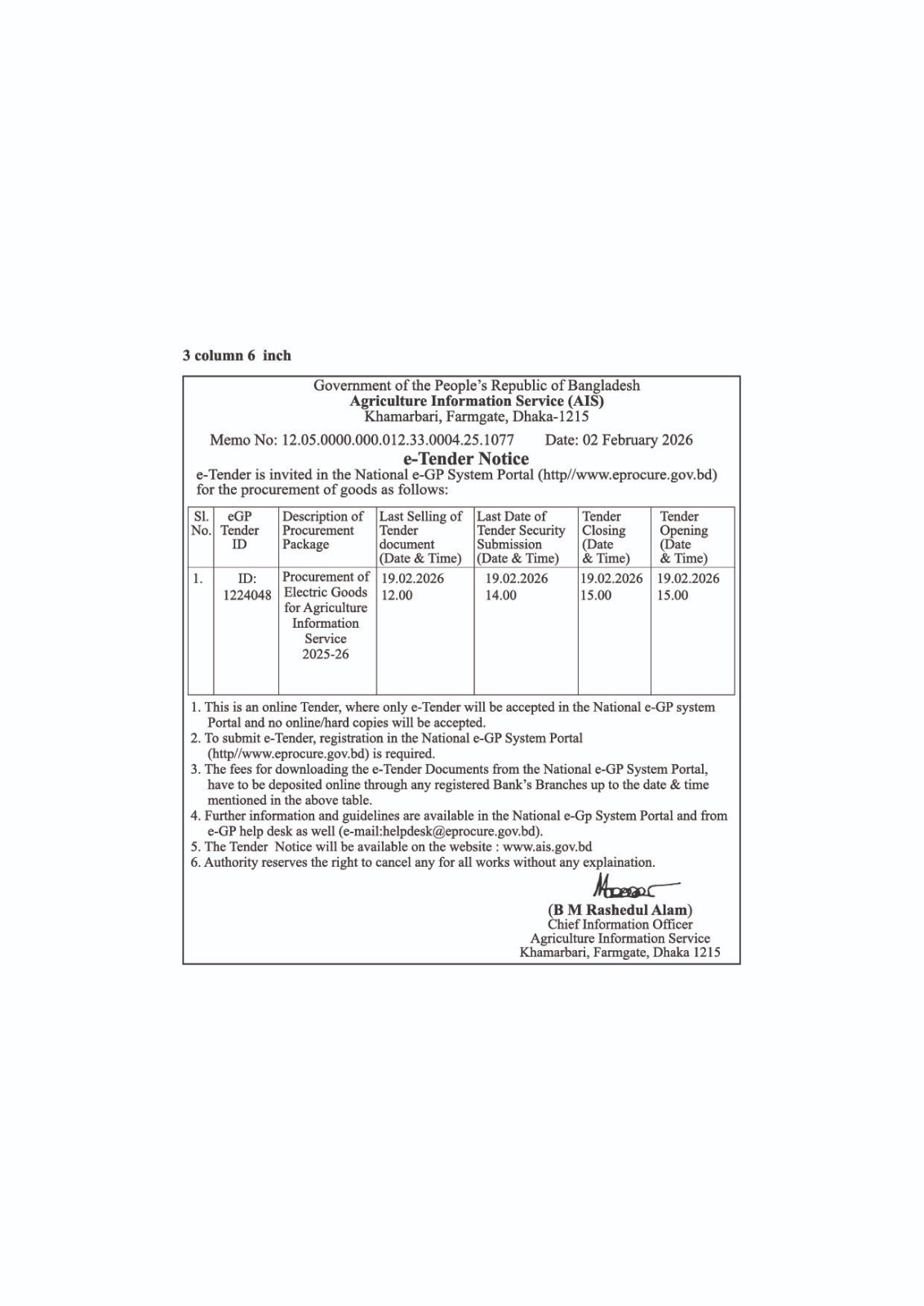 | ১ | দরপত্র বিজ্ঞপ্তি প্রকাশ | | | ০৫-০২-২০২৬ | দেখুন |